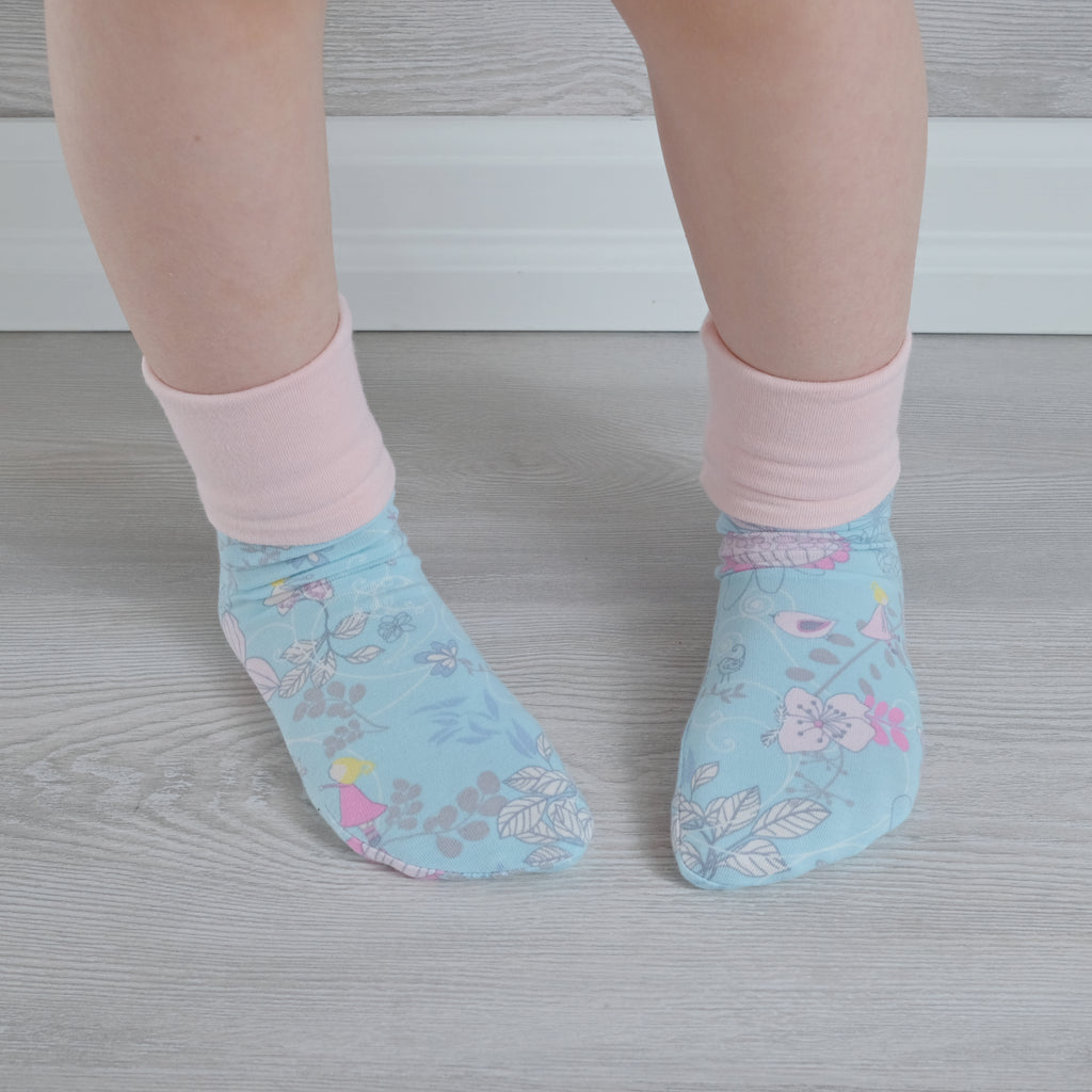 The socks are easy and quick to make. The pattern can be made from print to sew in well under half an hour! This pattern is beginner friendly and offers skills to learn such as French seams and creating trim accents.