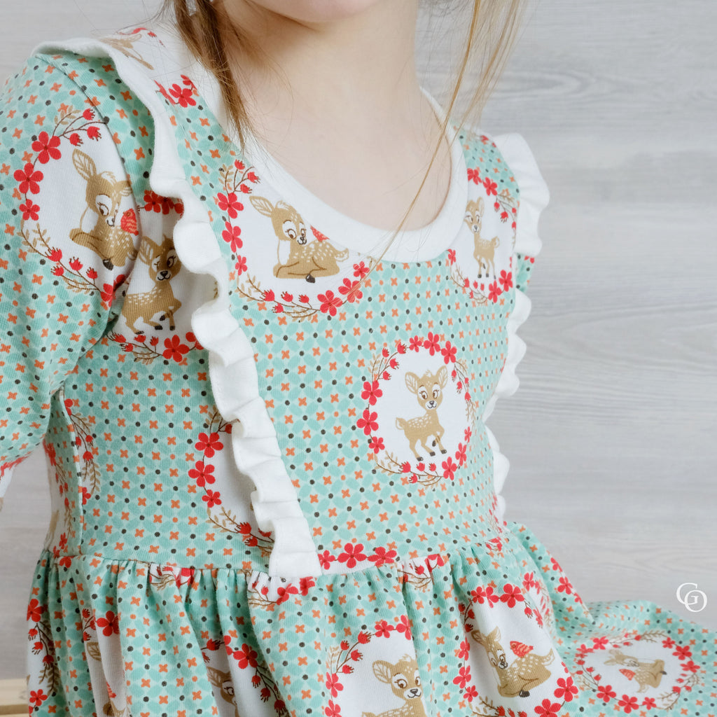 The dress is comprised of a semi fitted bodice and a gathered skirt for twirling perfection and absolute comfort. This dress will take you from the playground to any special event with endless variations and different looks that can be created from just 18 printed pages! (print guide included)