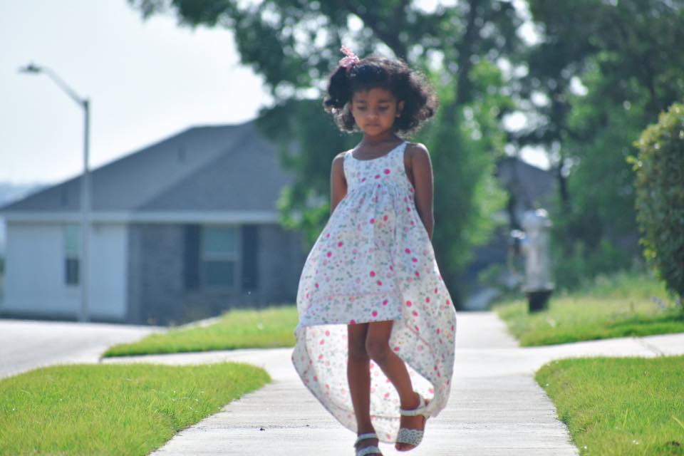 Never leave your child alone wearing a dress with long straps to ensure their safety.