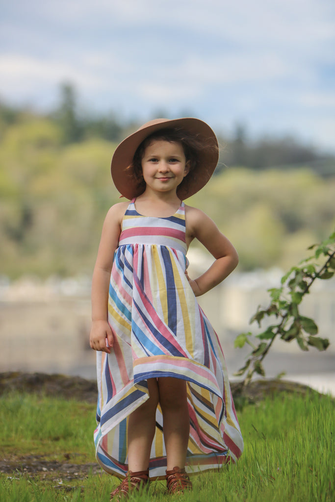 Meet our newest show stopper! This is the one. The one with all the drama and all the sweetness. Abby's Rainbow Dress has the most sophisticated look suitable for the most special days you spend together. Even the plain skirt option without color blocking - though a surprisingly quick sew, has the loveliest end results that will keep you coming back to this pattern time and again.