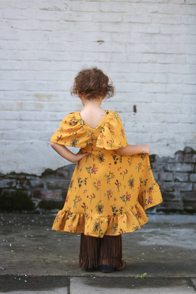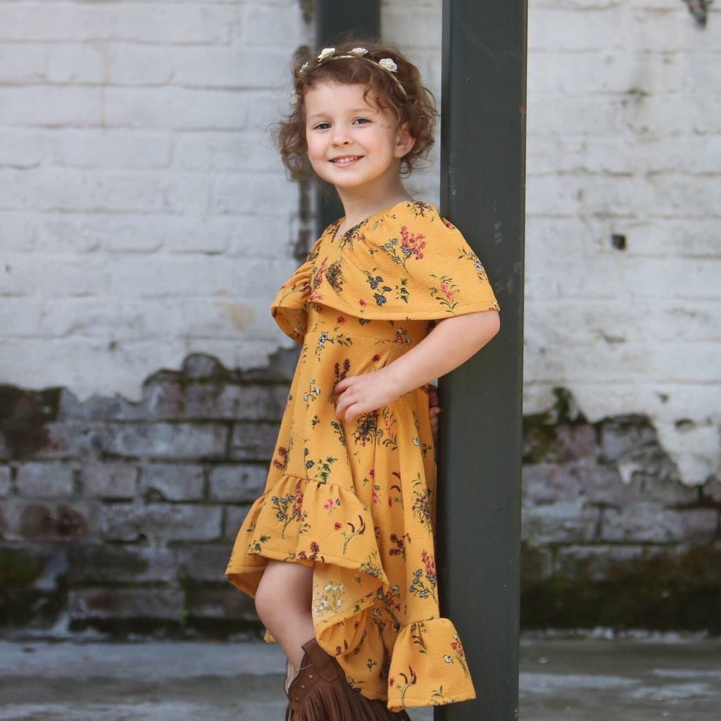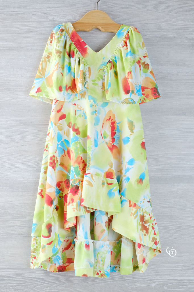 Be ready for the "oohs and ahhs!" with Abby's Watercolor Dress – in sizes 12m-14 yrs. Our unique hi-low skirt, full length skirt, and v-neck front and back bodice will be a surefire hit. Plus, choose between color blocked or solid bodice, choose your sleeve type, and gather the bottom ruffle. Detailed computer illustrative instructions make it easy for you. Step up the style game for your little one!
