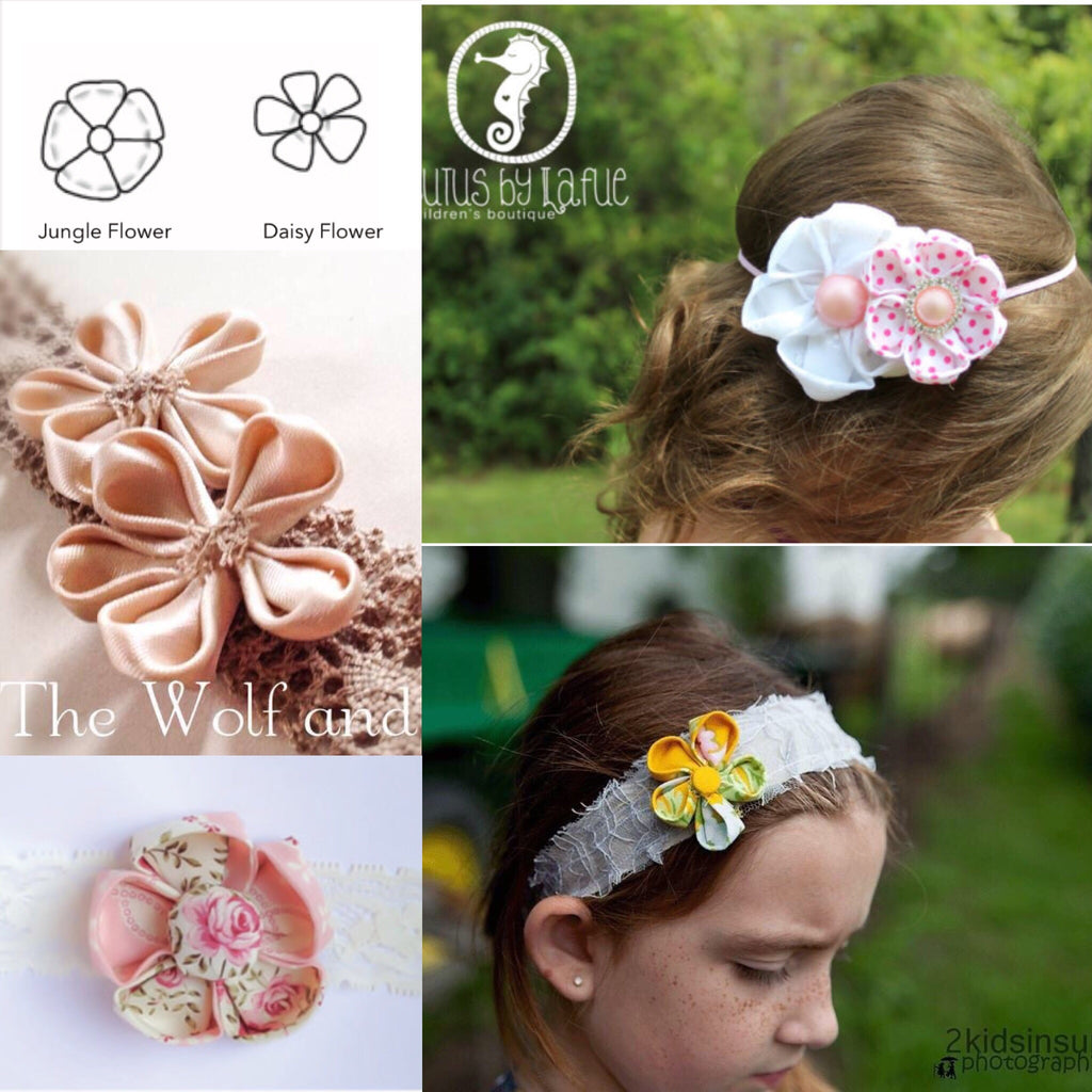 These sweet blossoms can be made with ribbon, lace, cotton, satin or silk. They are stunning as a hair fascinator - clip, comb, pin or hair band - , headband