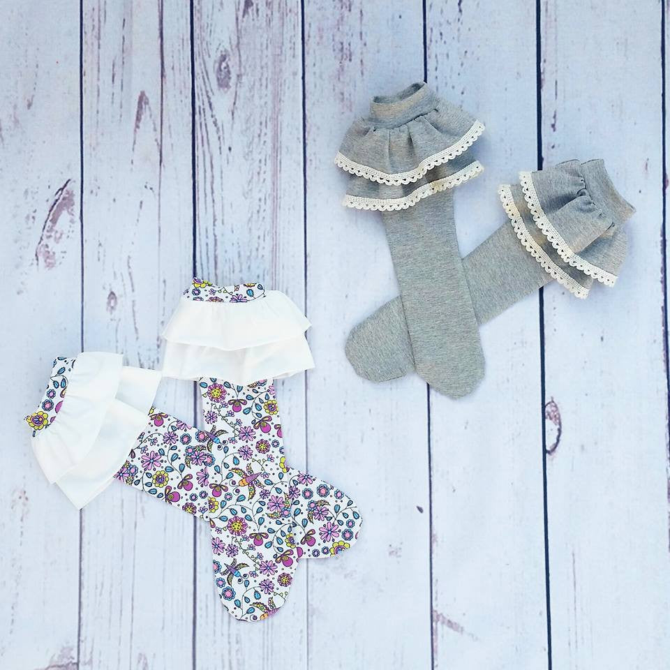 The socks are easy and quick to make. The pattern can be made from print to sew in one hour! This pattern is beginner friendly and offers skills to learn such as French seams and creating lace accents.