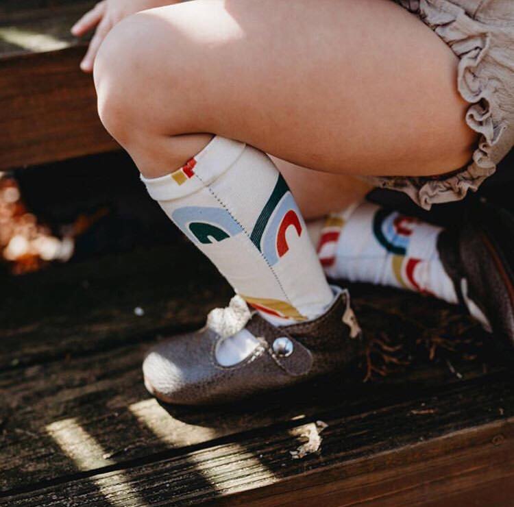 The socks can be made from any knit fabric with at least 25% stretch (a stretch gauge is included in the pattern). This means cotton lycra, French Terry, sweater knit, stretch lace, stretch chiffon, polyblend, rayon spandex etc are all good choices.